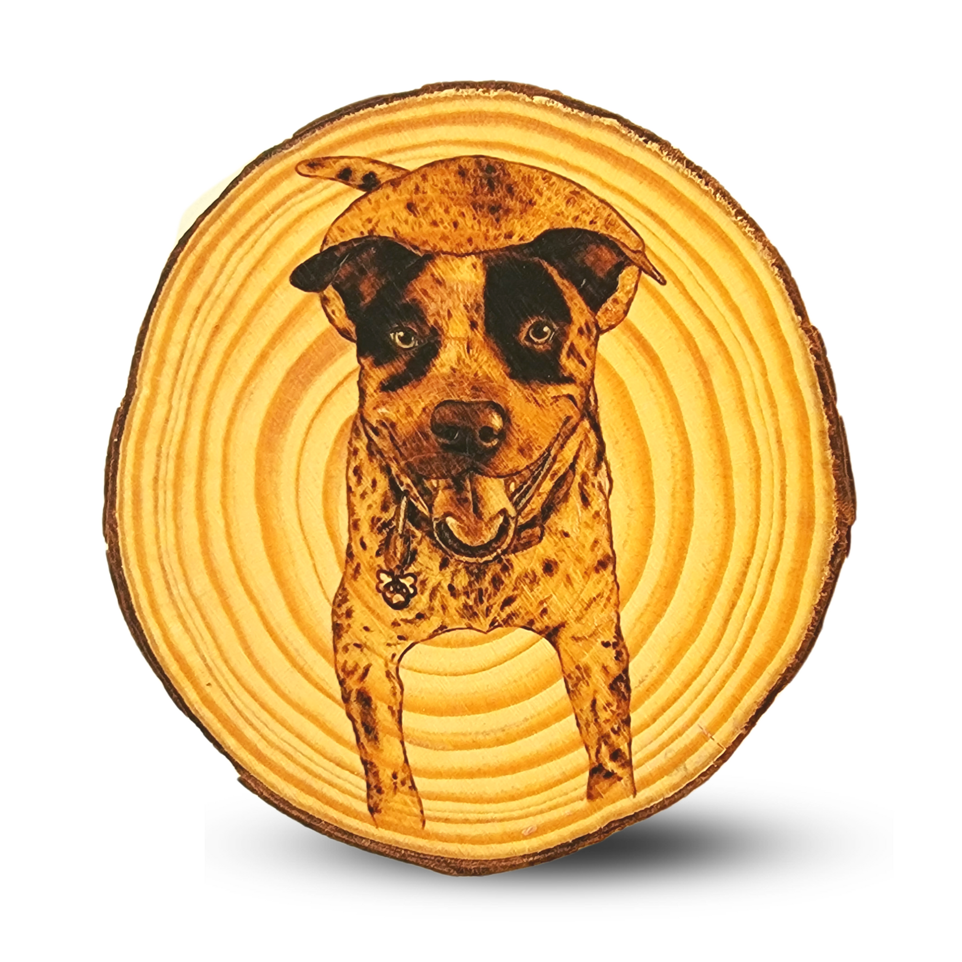 This is the smallest wood slice we provide and is a great gift or keepsake of your favorite pet or place! They work great for pet portraits, or scenery art (cabin, home, landscape ect.) These minis can be turned into Christmas ornaments as well or cute dog portraits for walls, key hooks or office décor!!